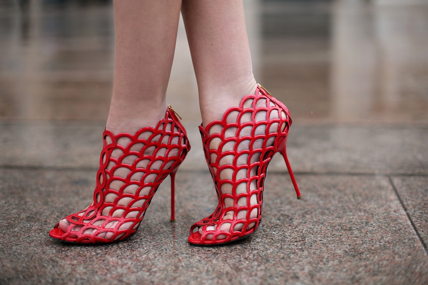 I wore this red on red to my first show of MFW, Gucci. And yes, despite several layers of thermals under my jacket I was absolutely freezing. I’m always a fan of contrast with the structured origami fold and high stiff neckline of the jacket over dainty rosebud lace.